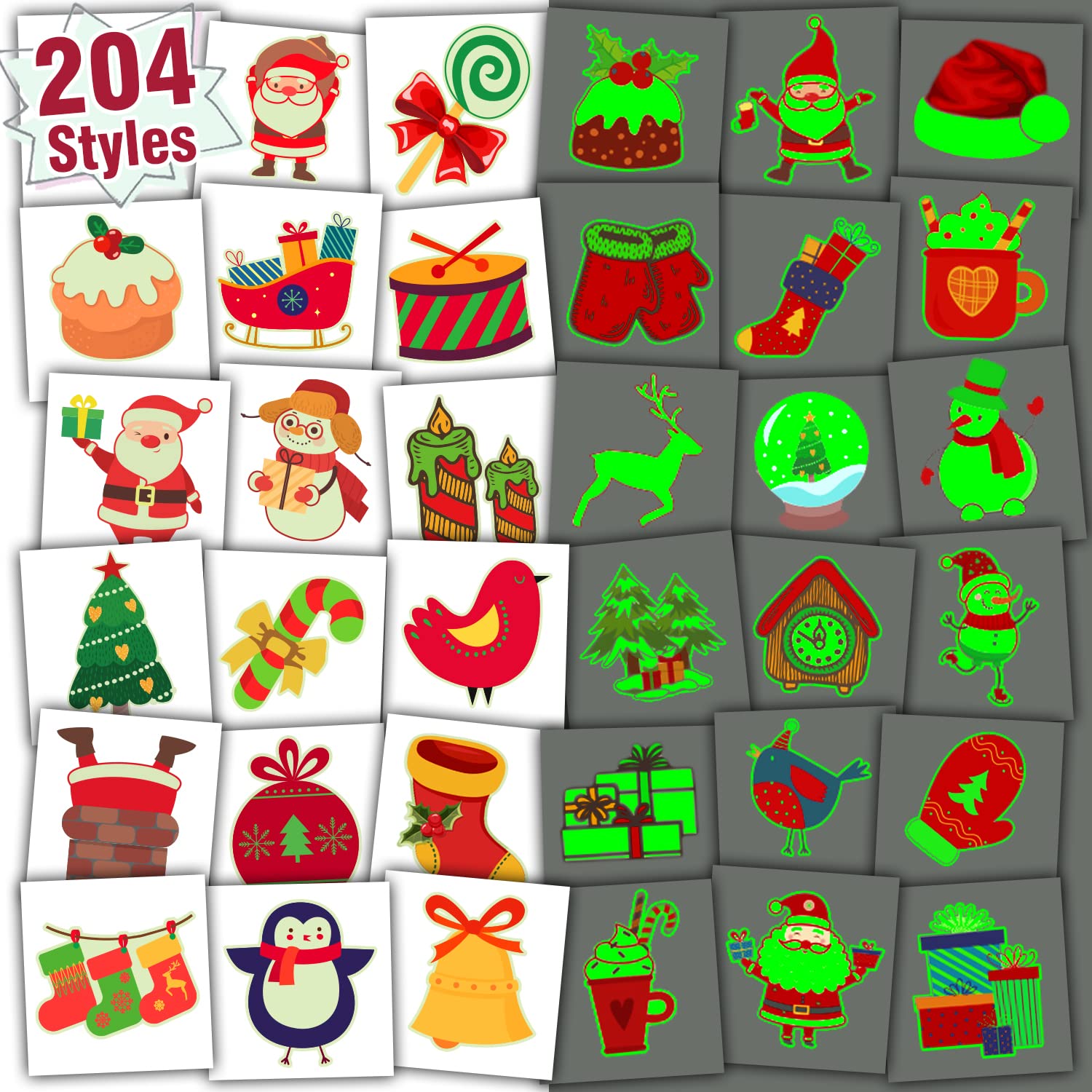 204 Pcs Wrapped Glow Christmas Tattoos – 129 Ratings